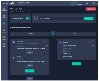 Configuring and modifying automated events to controlling actuators is easy with the IoTPortal’s intuitive zero-code graphical interface